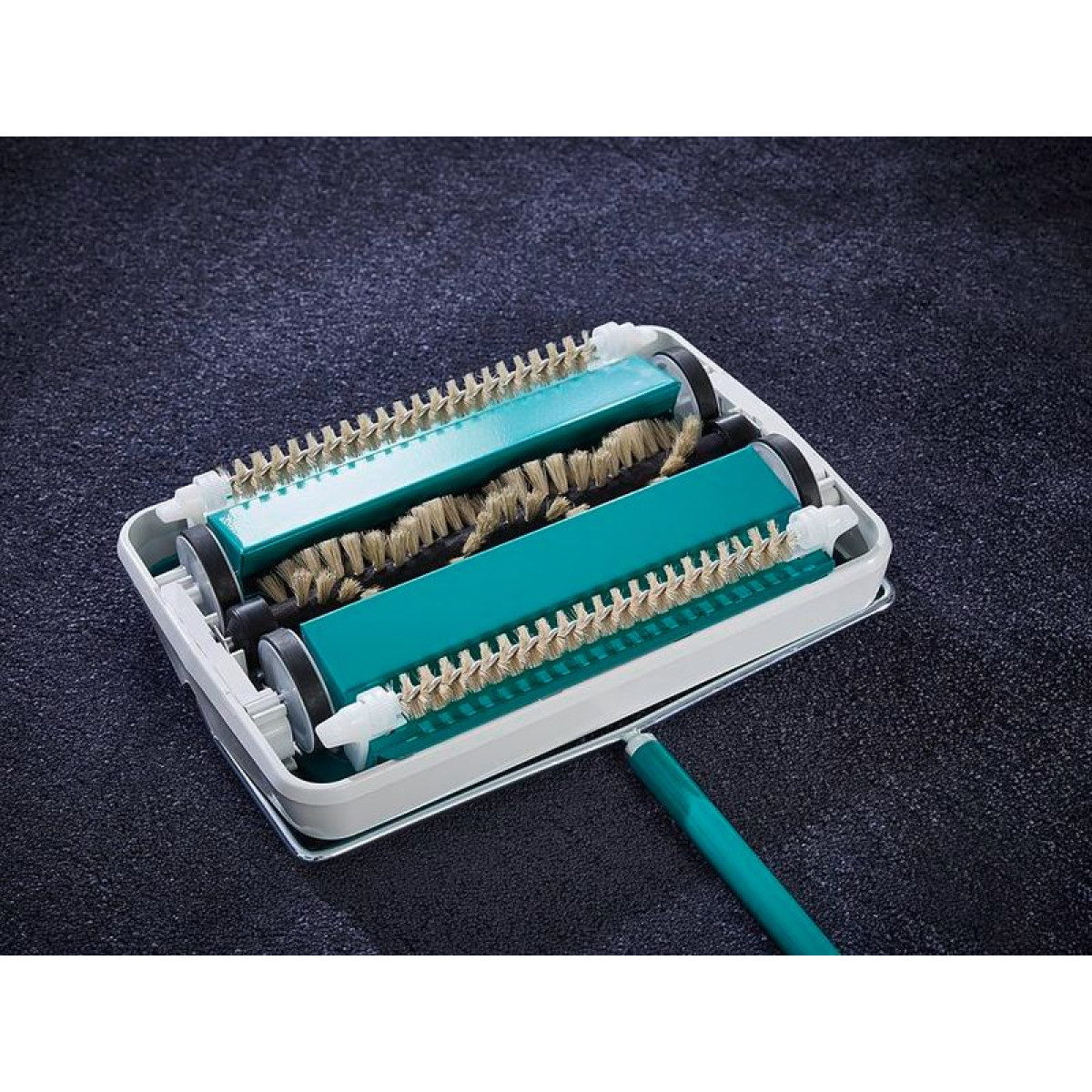 Rýchlo zametá prach, špinu, vlasy, chlpy a drobné nečistoty z kobercov, použitie bez elektrickej energie, tri otočné kefy, šírka kief 22 cm, veľký otočný gombík na regulovanie výšky, sklopná rukoväť na upratovanie pod nábytkom, 2 roky záruka.